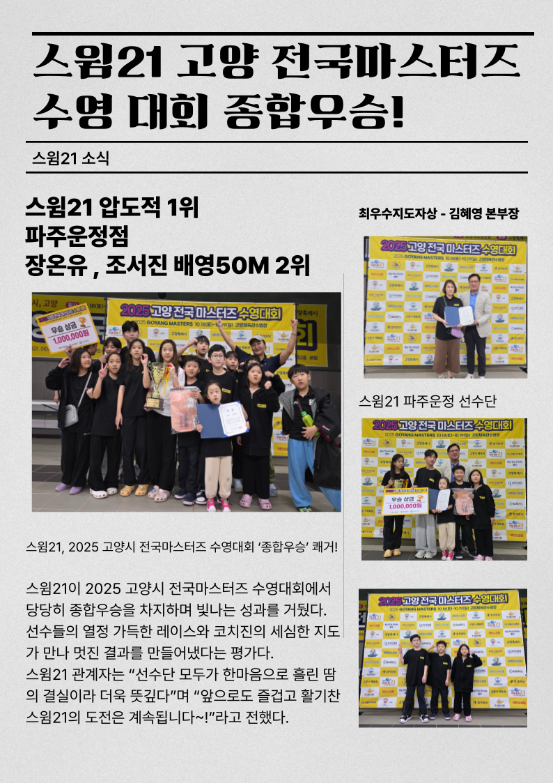 2025 고양 전국마스터즈대회 기사!(실제뉴스기사첨부)