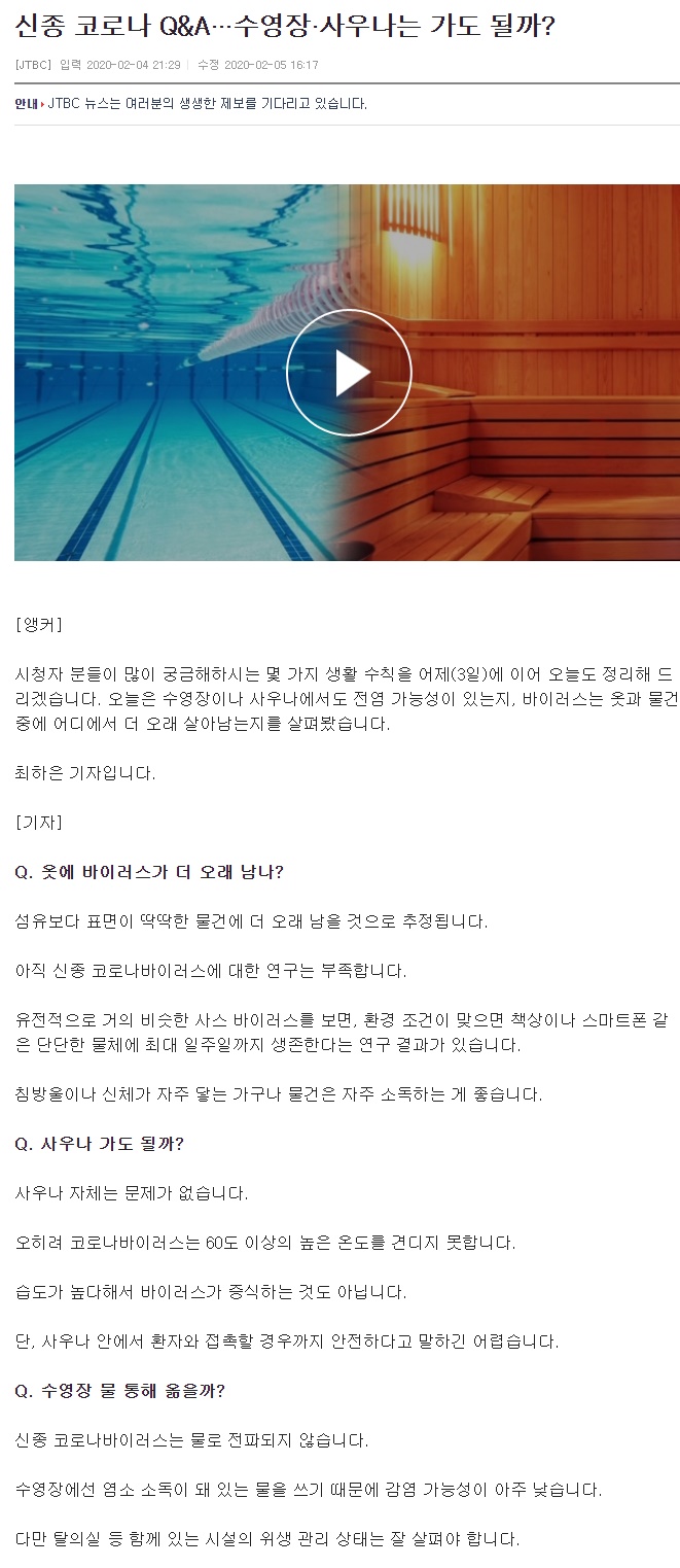 신종 코로나 수영장, 사우나 가도될까?