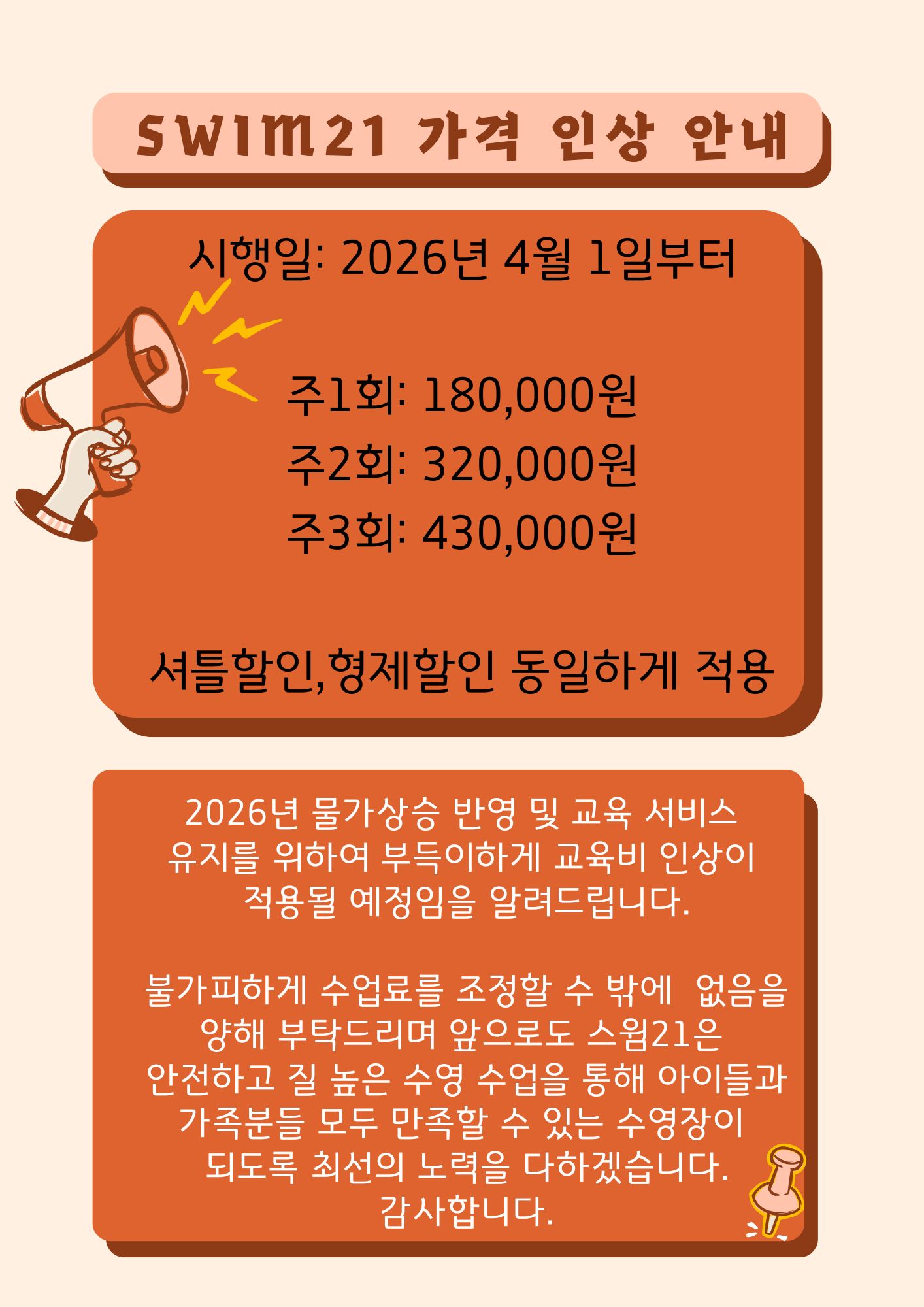 부득이하게 교육비 인상이되어 안내드립니다.