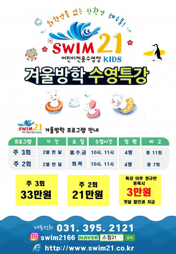 스윔21의 방학특강은 언제나 체계적인 지도방안을 추구합니다.