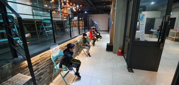 실내에서는 사회적 거리두기 캠페인을 유지하여, 모든 대화를 자제하게 하고, 마스크를 필수적으로 착용하게 합니다.
